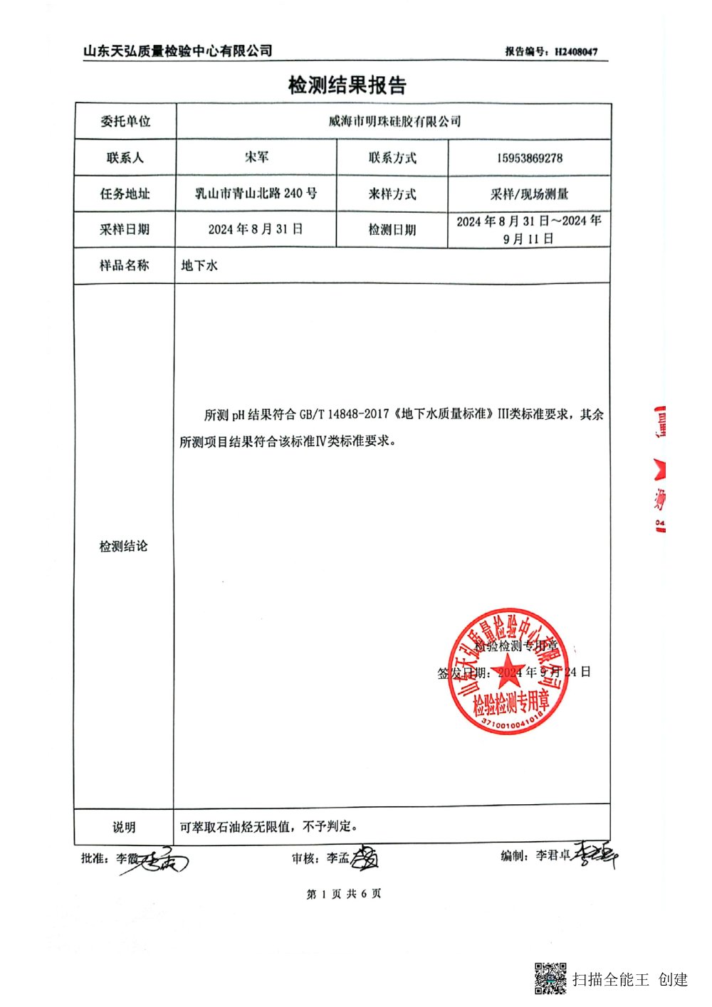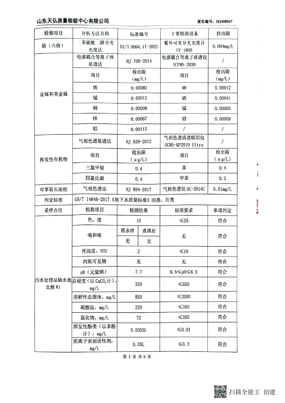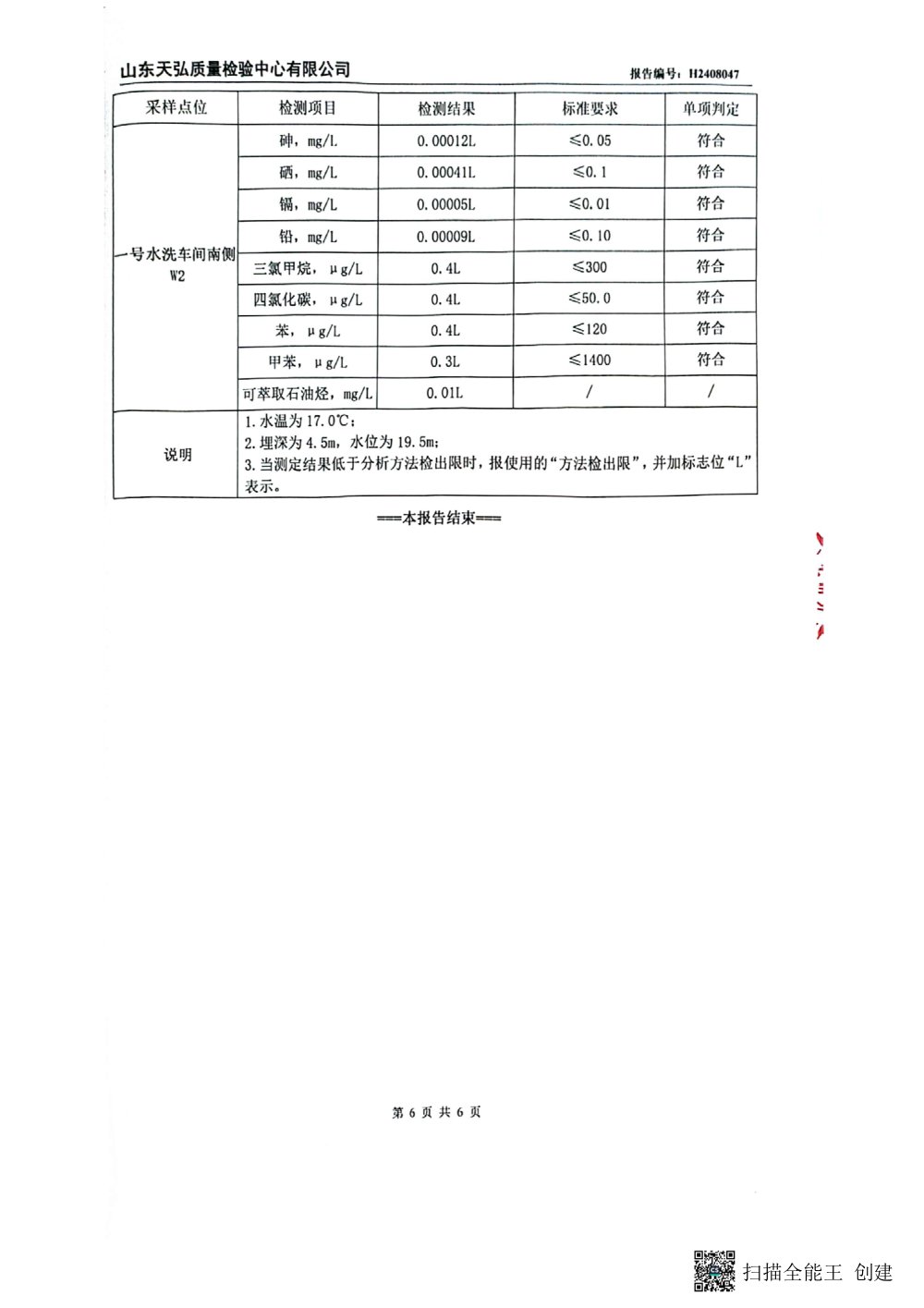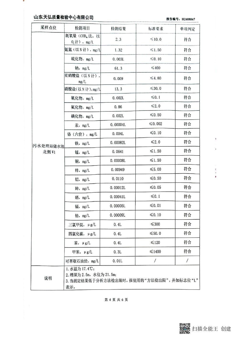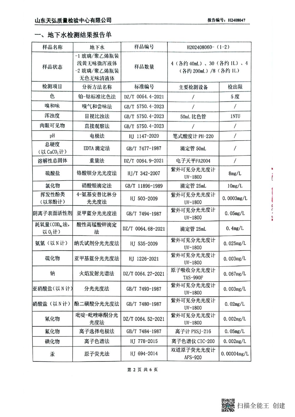 2024年下半年地下水檢測報(bào)告